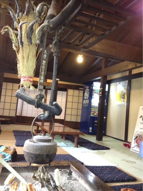 もちろん、おいしいごはんもあって、岩魚の塩焼きも五平餅も囲炉裏の前で食べれちゃうんだ。